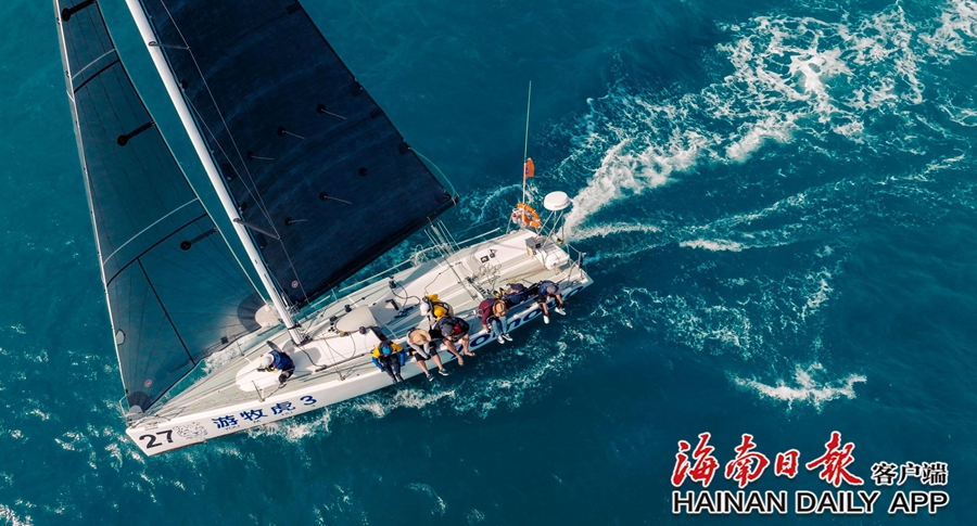 11月25日,IRC2组的游牧虎浪人队队员在三亚港内赛的比赛中。该船队最后获得三亚–万宁拉力赛冲线冠军。