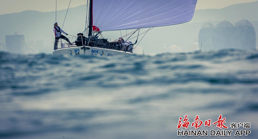 11月26日上午10点半,参加半环赛的8支船队自三亚迎风起航向北航行。