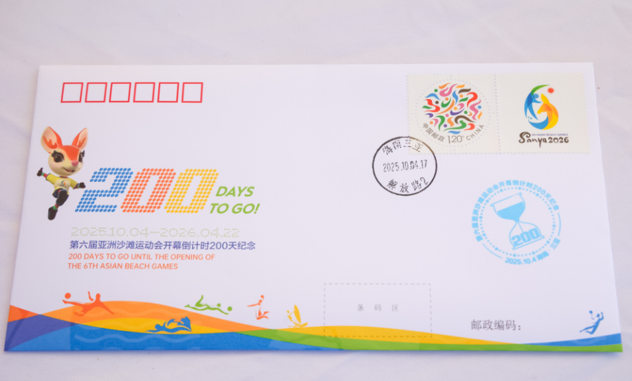 10月4日,2026年第六届亚洲沙滩运动会(以下简称“三亚亚沙会”)开幕倒计时200天之际,三亚亚沙会开幕倒计时200天纪念明信片与纪念封首发登场。