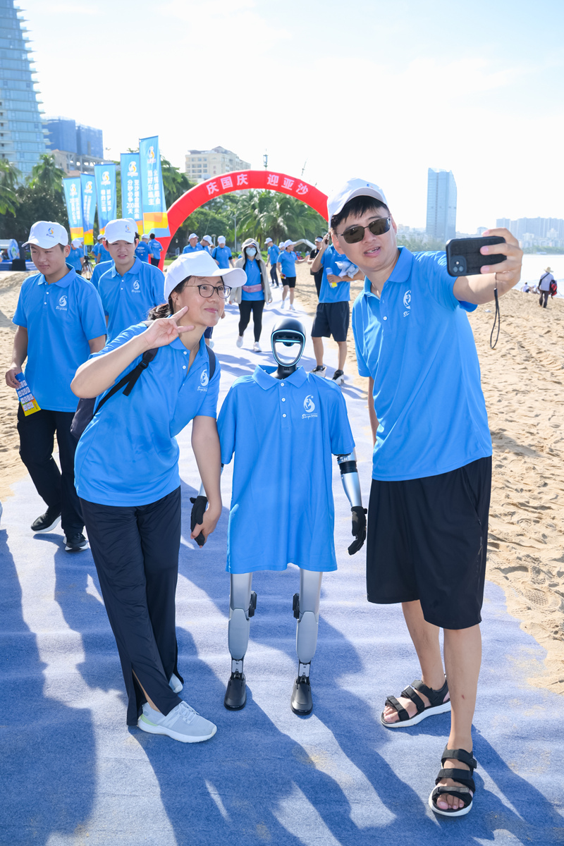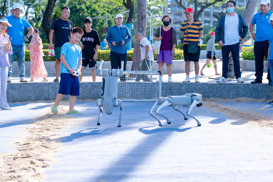 国庆期间的三亚湾,洋溢着运动与欢庆交融的独特氛围。作为赛事核心区的三亚湾,正按照“绿色、集约、可持续”理念推进改造,在保护滨海生态基础上,对沙质、水质和场地排水进行优化,全面提升游客的滨海体验。千余人参与的沙滩健步走,成为假日里一道流动的风景线。在亚沙会竞赛项目体验区,三人篮球、沙滩足球、柔术、卡巴迪和沙滩排球等项目吸引众多游客驻足体验。现场还设置了AI机器狗与机器人互动区,为传统体育注入科技新意。