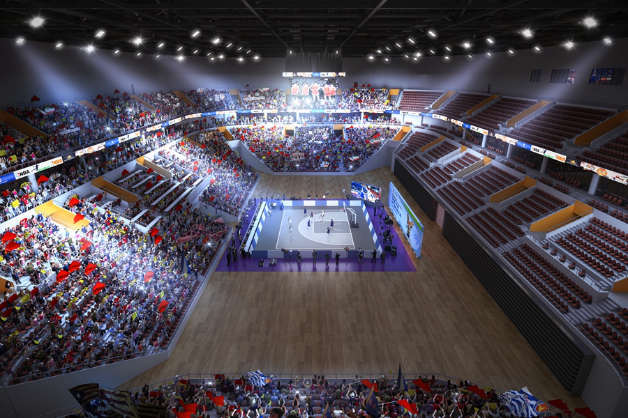 三人篮球竞赛项目效果图。(场馆搭建以实际为准)