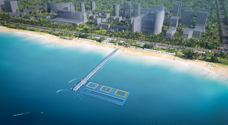 游泳(公开水域游泳、水球)竞赛项目效果图。(场馆搭建以实际为准)