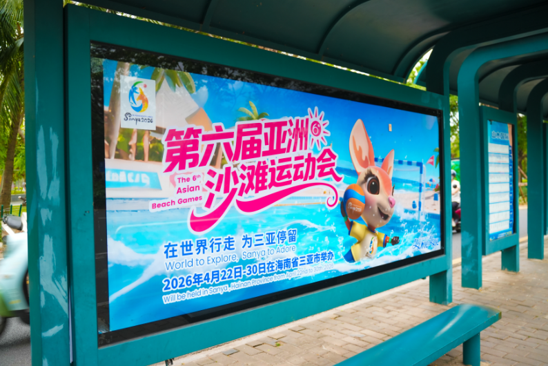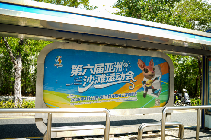 没错!你身边最熟悉的那个公交站候车亭,悄悄换上了“亚沙限定”新皮肤,以全新的2026年第六届亚洲沙滩运动会(以下简称:三亚亚沙会”)主题形象迎接八方来客!扑面而来的海洋清风与运动活力,瞬间把候车的时光变成了一场与亚沙会的邂逅。
