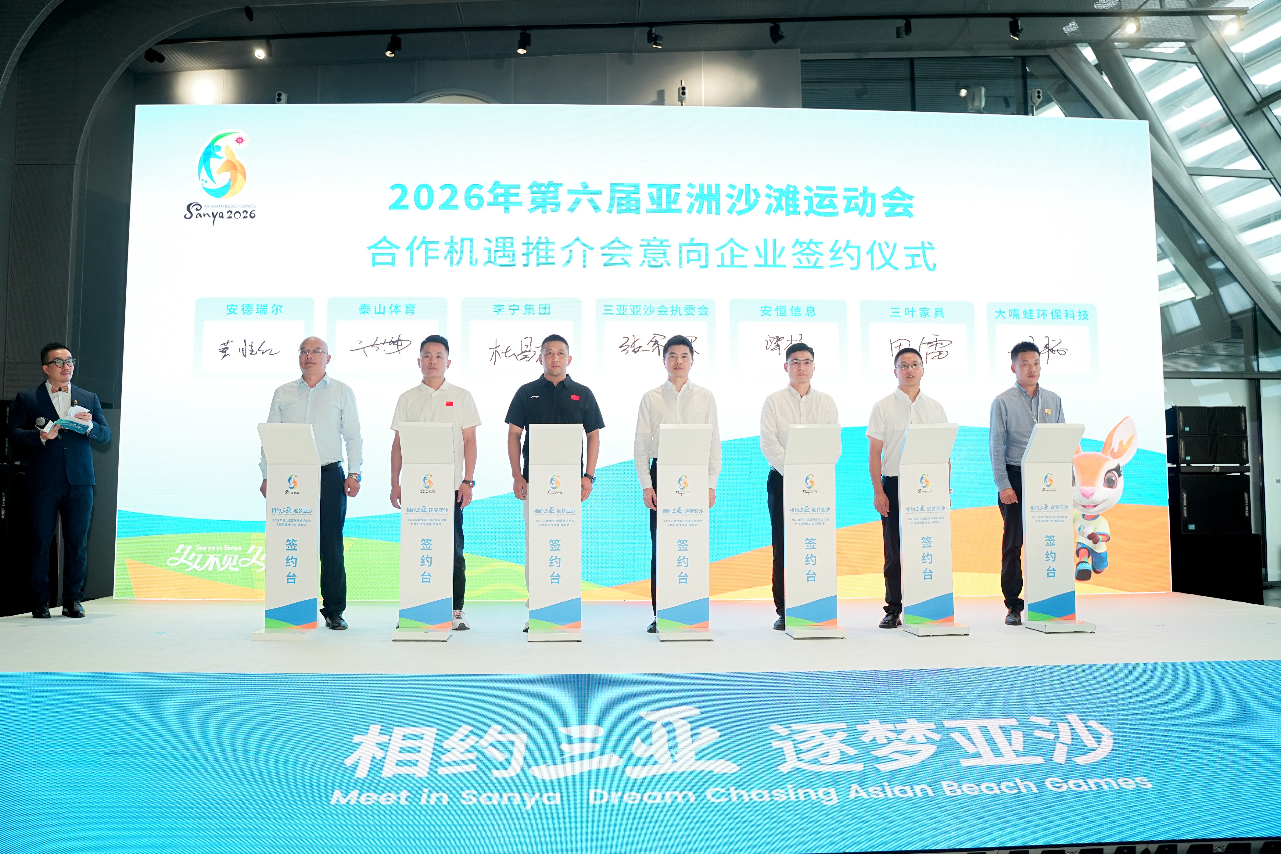 会上,李宁(中国)体育用品有限公司、杭州安恒信息技术股份有限公司、山东泰山体育器材有限公司、重庆市三叶家具有限责任公司、武汉安德瑞尔体育产业有限公司、四川大嘴蛙环保科技有限公司等六家企业与三亚亚沙会执委会共同签署了合作意向。这一环节形成了良好的示范效应与带动作用,标志着三亚亚沙会市场开发工作取得了阶段性进展,也为更多企业参与合作增强了信心。未来,三亚亚沙会市场开发工作将持续发力,与更多企业洽谈合作。