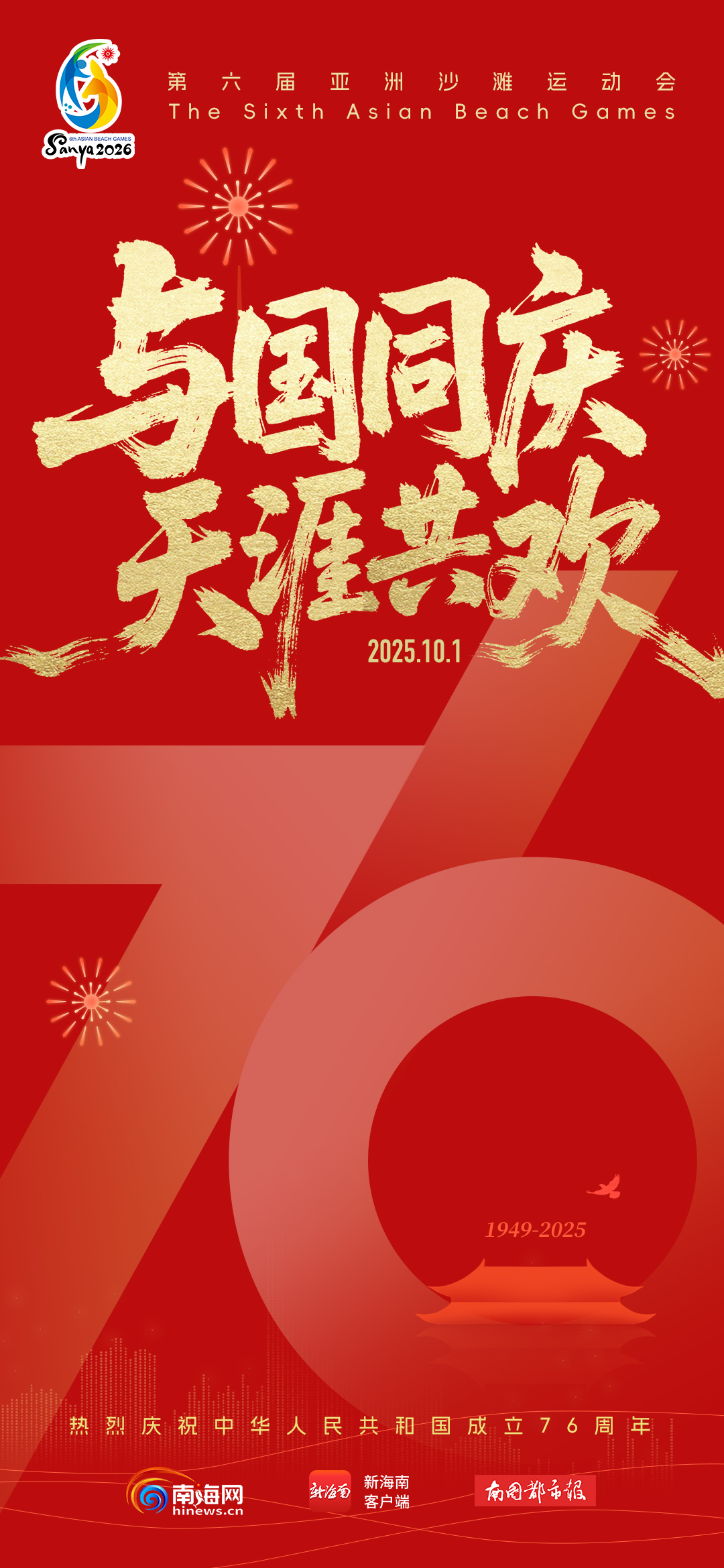 在庆祝中华人民共和国成立76周年之际,2026年第六届亚洲沙滩运动会(以下简称:三亚亚沙会)也迎来倒计时200天。三亚亚沙会执委会一办十四部全体工作人员正以满腔热忱竭尽全力备战亚沙,誓以精彩盛会礼赞祖国!