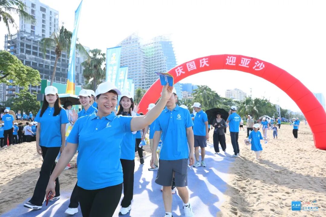 10月4日的三亚湾,因一场千人健步走活动而格外动人。作为三亚亚沙会规划赛场,这片金色海岸见证了千余名市民组成的“亚沙”队伍。从海月广场延伸至金鸡岭街路口,他们犹如一道蓝色浪潮在沙滩上涌动。