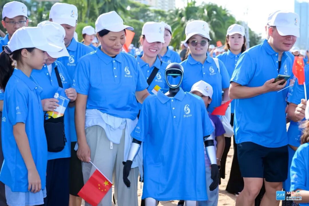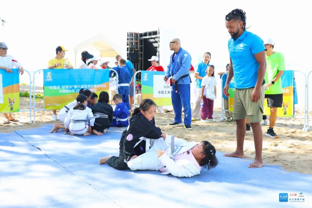 启动仪式现场,200名志愿者同时撑开红色雨伞,在朝晖映照下组合成醒目的“200”字样;三人篮球、沙滩足球、柔术、沙滩卡巴迪和沙滩排球五个亚沙会竞赛项目体验区,让市民游客沉浸式感受沙滩运动的独特魅力;科技感十足的AI智能机器狗和机器人互动体验区,让孩子们在欢声笑语中对科技与体育融合的盛会充满期待……整个活动现场气氛热烈,运动激情与科技趣味相得益彰,充分展现了三亚亚沙会的活力与特色。