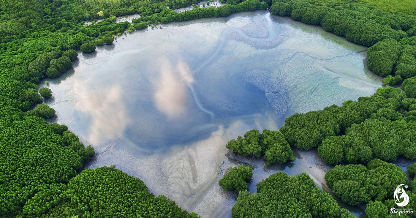 航拍亚龙湾红树林保护区,它的形状犹如“大地之肺”。封烁摄