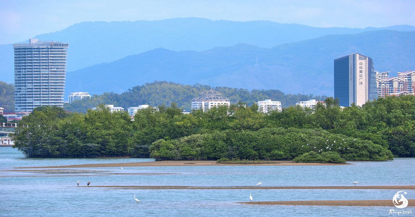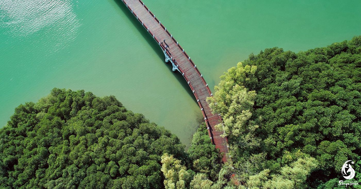 俯瞰三亚市红树林生态公园。这座昔日的硬质河岸和臭水沟区域,在近几年的修复建设后已成为三亚市环境建设的典范,并于2019被评为AZ最佳景观奖。封烁摄
