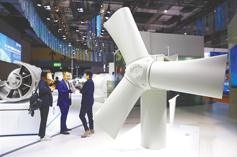 进博会上展出的风力发电设备。海南日报记者 张茂 摄