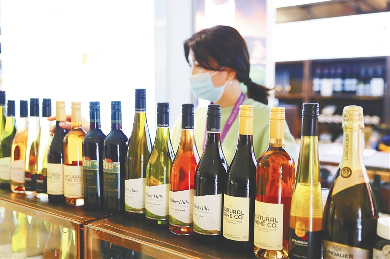 进博会上展出的进口红酒。海南日报记者 张茂 摄
